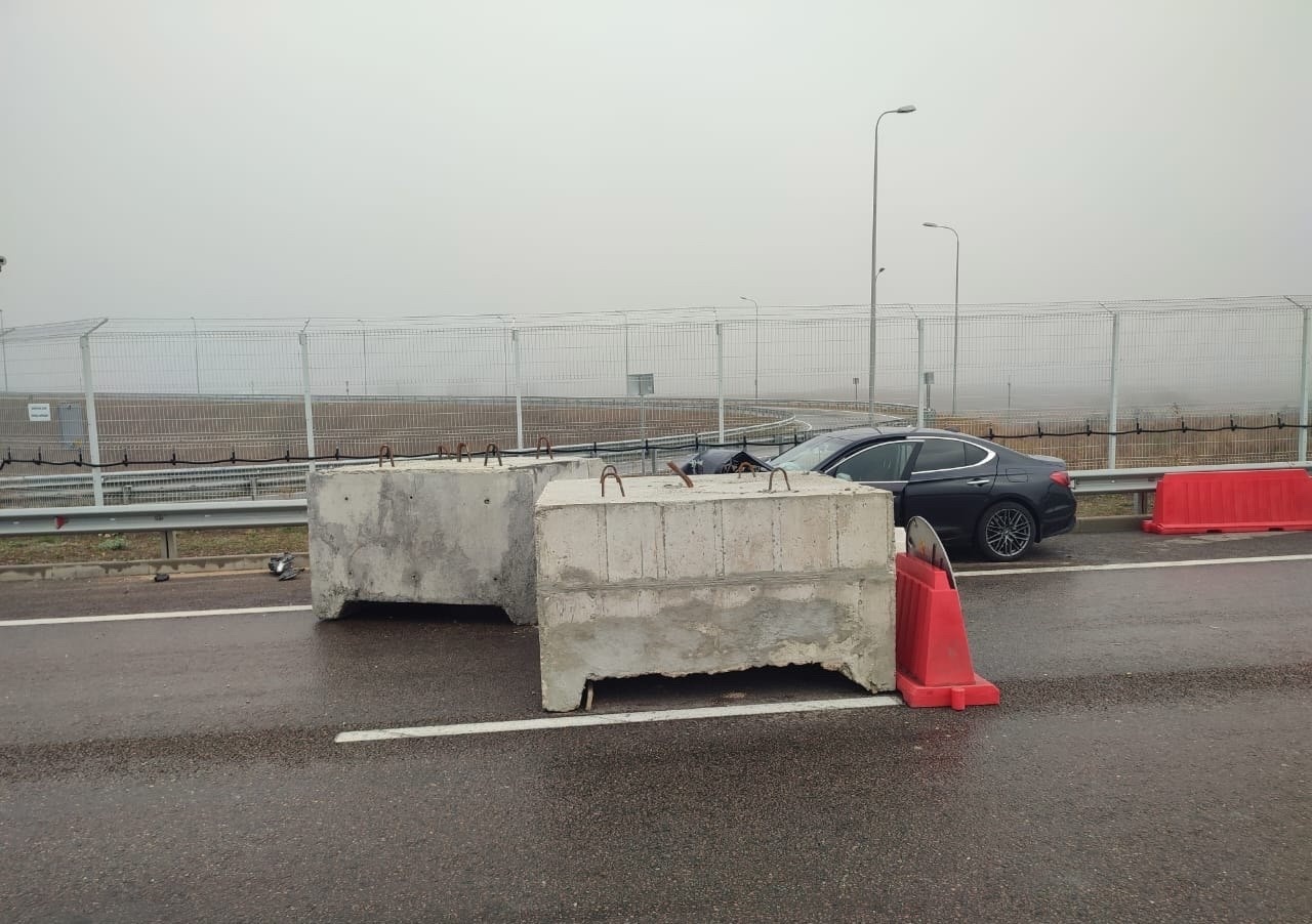 На автоподходах к Крымскому мосту иномарка протаранила бетонный блок