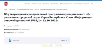 Ах, да. Это материалы публикация издания, где учредителем выступает администрация города. Издание было создано под программу керченской администрации «Информационное общество». Зарегистрировано 12 июля, а программу утвердили 12 октября. Программа на 15 миллионов рублей на 3 года.