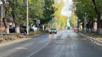 В Керчи на улице Гагарина на проезжей части уложили первый слой асфальта, - передает Керчь.ФМ.