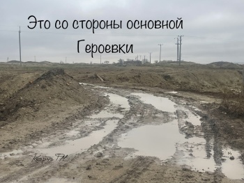 Со стороны основной Героевки можно проехать на машине только до маяка. И все. Дальше асфальт превратили в состояние навозной жижи грузовые машины, экскаваторы, длинномеры, которые задействованы уже не первый год на строительстве водовода в поселок.