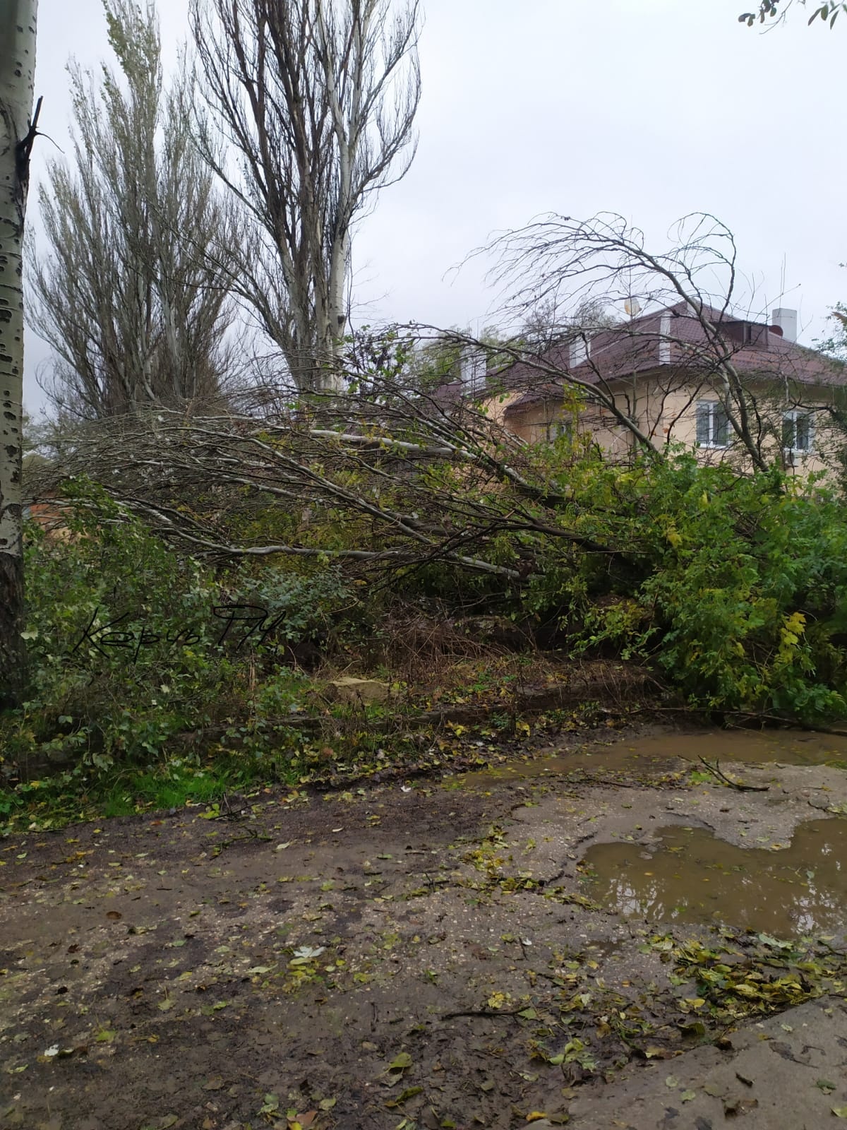 На Парковой упавшие деревья перегородили внутридворовую дорогу и разбили детскую площадку.
