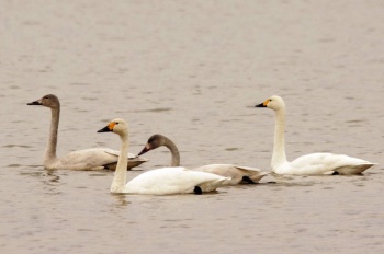 На фото самка и семья малого или тундрового лебедя (Cygnus bewickii) - КК РК (6), КК РФ (5).
