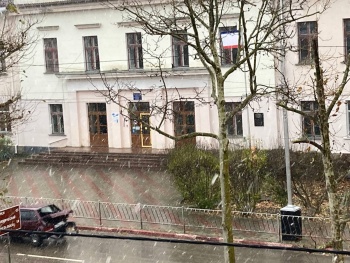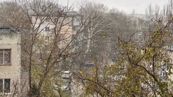 После солнечного утра небо мигом потемнело и сверху посыпалась крупа. За пару минут крупа превратилась в крупные снежинки, - передает Керчь.ФМ.