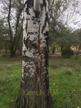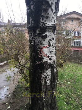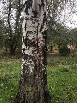 Деревья с надписями и буквами, которые городские службы делали. Только для кого это делали, если деревья годами так стоят… Ветер чуть сильнее и все упало. Как любят говорить в известных всем местах, когда убьют, тогда приходите.
