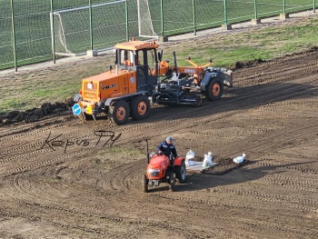 В Керчи восстанавливают тренировочное футбольное поле. Поле было затоплено и завалено мусором после потопа 2021. Работники ДЮКФП убрали остатки мусора, убрали сорную траву, подготовили землю под посев газона.