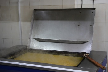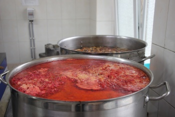 На плите томился обед для дошкольников. В меню был борщ, плов и компот.