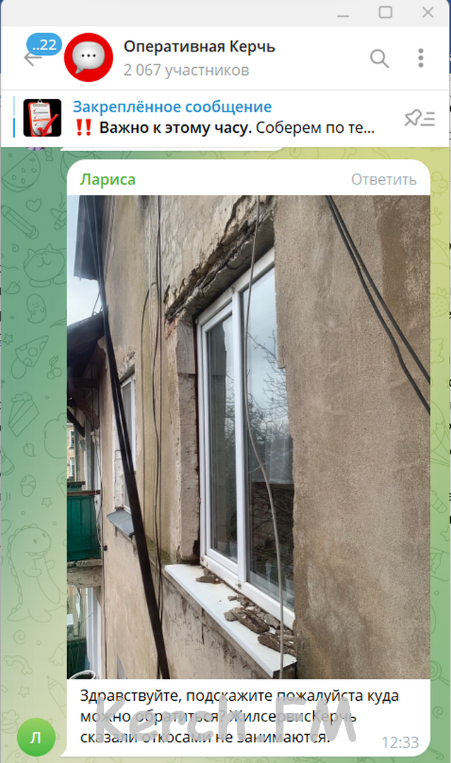 Керчанке отказала управляющая компания в ремонте внешнего уличного откоса. Свой вопрос женщина задала в группе «Оперативная Керчь», созданном для оперативного решения коммунальных вопросов во время урагана. Правомерно ли это выяснила редакция Керчь.ФМ.
