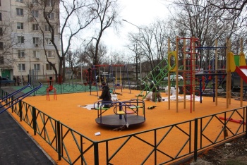 Во дворе многоквартирных домов № 51Б, 53, 53А, 55, 57, 59 устанавливают детские игровые элементы. Детские площадки практически готовы к маленьким посетителям.