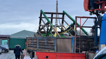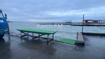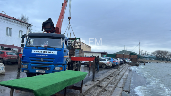 В Керчи ночью Крещенская купель развалилась во время шторма. Сегодня, 19 января с самого утра работают сотрудники «ЖилСервисКерчь». Они грузят купель в машину.