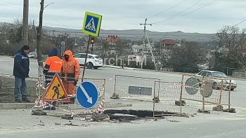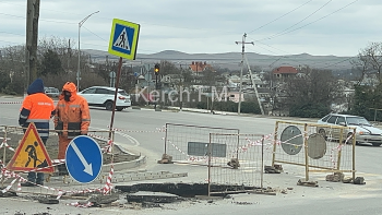 В Керчи 16 февраля на Куль-Обинском шоссе на месте провала дороги начали ремонтные работы. Сотрудники водоканала приступили к работам, - передает Керчь.ФМ.