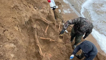 "Обрушилась часть берега в нескольких метрах от старого места, и обнаружились захоронения. Там была могила два на два, случился обвал и все перемешалось. По черепам получилось восемь человек. Всех мы подняли, почистили и отвезли на временное место хранения", - рассказал Виктор Густой.