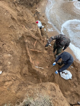 Там, где еще два с половиной месяца назад был берег, море забрало несколько метров открыв захоронение бойцов РККА.