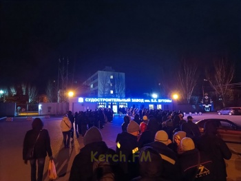Из-за требований проходить через рамку металлодетектора и тщательном осмотре каждое утро перед заводом "Залив" собираются многочисленные очереди. При этом засчитывать время вынужденного ожидания на проходной никто не спешит учитывать в качестве рабочего. Фото и описание прислали в редакцию Керчь.ФМ работники предприятия.