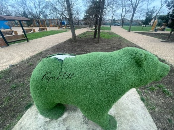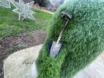 Фигуры топиар (фигурная стрижка газона) в Керчи это пластиковый каркас обтянутый искусственной травой. В случае порывов либо повреждения зеленого декора, его можно заменить. Стоимость квадратного метра от 319 рублей. Поэтому если и стоят ободранные ослы, то это не потому, что денег нет, а совсем по другой причине - желания.