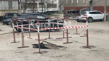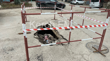 В Керчи на улице Генерала Петрова, 14 провалилась дорога. Место оградили, но вот работы так никто и не начал, - передает Керчь.ФМ