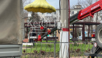 В Керчи 29 марта в сквере Воссоединения приступили к наведению порядка. Так, рабочие начали мыть инсталляцию «Подсолнухи». Для этих целей пришлось вызвать вышку, - передает Керчь.ФМ.