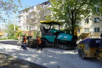Строители асфальтируют зоны для стоянки машин, пешеходные дорожки. Также на ул. Фурманова и ул. Вишневой, 1 подрядчики укладывают прорезиненное основание на детских и спортивных площадках, где позже будут установлены спортивное оборудование и детские игровые элементы.
