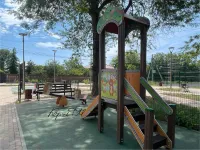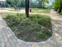 Правда в песочнице вместо песка кусочек целины, а по детские качели не хватило благоустроенного участка, поэтому их поставили просто на землю. Про траву нескошенную и необработанную территорию от клещей можно же уже не писать?