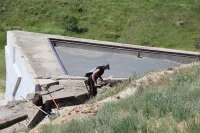 Параллельно ведутся работы по замене дренажной системы. Строители подготавливают специальную траншею, которая будет служить местом сбора и распределения выпадающих осадков, которые не должны попадать на барельеф.