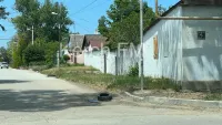Чтобы водители не попали в ловушку, на люк поместили покрышку. Предупреждающий дорожный знак никто не установил.