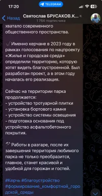 Многие ранее недовольные проектом и благоустройством уже смирились с проектом. Тем не менее, вопрос по деревьям и их компенсационной высадке до сих пор не решен, что ставит под сомнение реализацию всего проекта, особенно в свете возобновленного уголовного дела по спилу деревьев в Керчи.