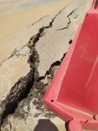 На Аршинцевской косе порвало проезжую часть. Провал уже глубокий и расходится дальше, - передает Керчь.ФМ.