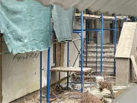 Только выступать на сцене в том виде, которую показали, как сделанную, нельзя будет никогда, так как она подвешена на пустоте, замурованной гипсой. Да и стены не выдержали бы долго, так как отделочная плитка так же во многих местах держится на пустоте. Ни в коем случае нельзя заходить за забор или стоять близко к зданию.