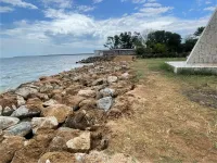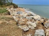 Берег у Братской могилы по Косоногова в Керчи укрепили огромными валунами. Оформленной кучей их свалили на побережье, - передает Керчь.ФМ.