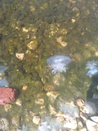 К берегу пока прибивает только мелких. Но местные жители обеспокоены: чуть дальше отойдешь, и они уже достигают в диаметре основной части 30-40 см. Их число и размеры увеличиваются с каждым днем, - передает Керчь.ФМ.