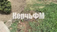 В Керчи в Комсомольском парке на газоне образовалось течь. При чем сразу в нескольких местах. Её не могут устранить уже не один месяц.