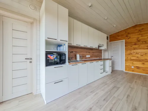 Отделка: внешняя и внутренняя отделка с использованием качественных материалов, включая окна, двери, всю электрику с розетками, выключателями и светильниками, полностью укомплектованный санузел и вентиляцию.