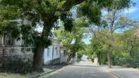 Стоит отметить, что движение по улице частично затруднено. Часть тротуаров здесь заасфальтировали еще несколько месяцев назад.