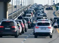 По официальным данным на 9 часов утра в очереди со стороны Тамани находится 1130 транспортных средств. Время ожидания более трех часов.