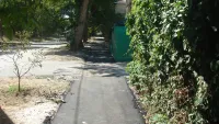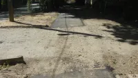 Теперь здесь уложен новый тротуар. Заезды во дворы оставили открытыми, т.е. тротуар ими периодически прерывается.