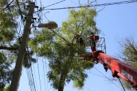 Продолжили обрезку разросшихся деревьев вдоль улиц Горького и Войкова. Специалисты Службы городского хозяйства защитили линии электропередач от чрезмерной нагрузки во время сильного ветра.