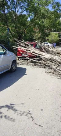 В Керчи 6 сентября начался деревопад. Так, на припаркованный автомобиль упал тополь. По фотографии видно, что дерево было сухим. Об этом сообщили в группе «Ситуации на дорогах», - передает КерчьФМ