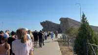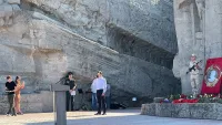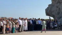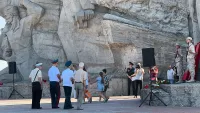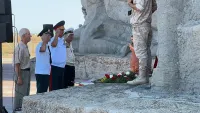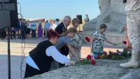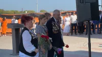 Праздничная суббота началась с возложения цветов у Аджимушкайских каменоломен. Чиновники Керчи поздравили горожан с праздником.