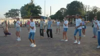 В день города-героя вечером у самого синего моря в Адмиралтейском проезде керчане учились танцевать сальсу и бачату, передает КерчьФМ.