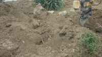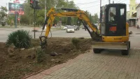 Экскаватор продолжает рыть траншеи для последующего монтажа автоматизированной системы.