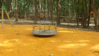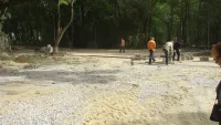 Идет подготовка зоны "Лукоморье", где планируется установка фигур сказочных персонажей поэмы А.С.Пушкина "Руслан и Людмила".
