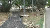 В Керчи, в районе остановки "Керчьрыбпром", продолжаются работы по укладке новых тротуаров.
