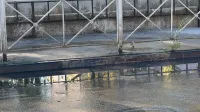 Кубы воды стекают в речку Мелек-Чесме. Бригады водоканала пока на месте порыва нет.
