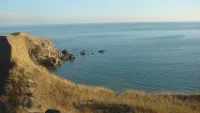 Расположен он за селом Заветное. Но добраться до берега с множеством превосходных бухт с песчаными пляжами можно только своим ходом или на авто.