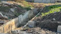 Специалисты расширили бетонное основание, которое служит началом ливневой канализации. Также планируется убрать два бортовых камня, чтобы увеличить отверстие для стока воды.