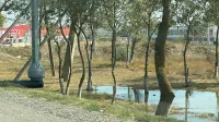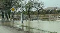 Также затоплена оказалась и проезжая часть. Водителям стоит быть осторожнее.