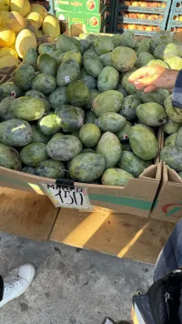 Если несколько недель продавали только манго со шкуркой зеленого цвета, то теперь появился и с желтой, ну и размером он больше, прям как маленькая дыня.