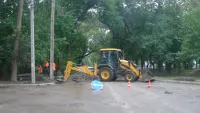 Ремонтные работы осложнились тем, что над трубой, где произошел порыв, пролегает электрокабель.