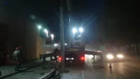 Водитель большегруза врезался в опору электроосвещения рядом с магазином "Амбар", в результате чего район был обесточен.