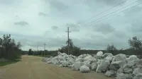 По дороге в Нижнюю Героевку начали работы. Уже завезли немного бута для укрепления дороги от подтоплений. На месте работает тяжелая техника, установили предупреждающие дорожные знаки.