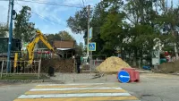 Кроме проезжей части, разрыли и тротуар. Пешеходам стоит быть внимательнее и смотреть под ноги.